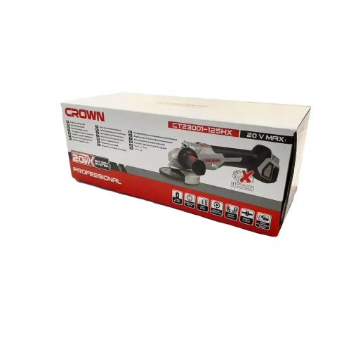 Машина шлифовальная угловая CROWN CT23001-125HX, 20В, 8000об/мин, диаметр диска 125мм, вес 1.83кг