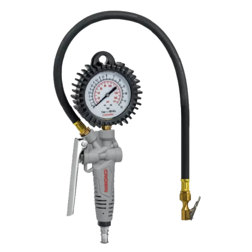 <p>Пистолет для подкачки шин CROWN CT38150, длина шланга 750мм, 0.2-0.6Мпа, диапазон измерения манометра 0-12бар</p>