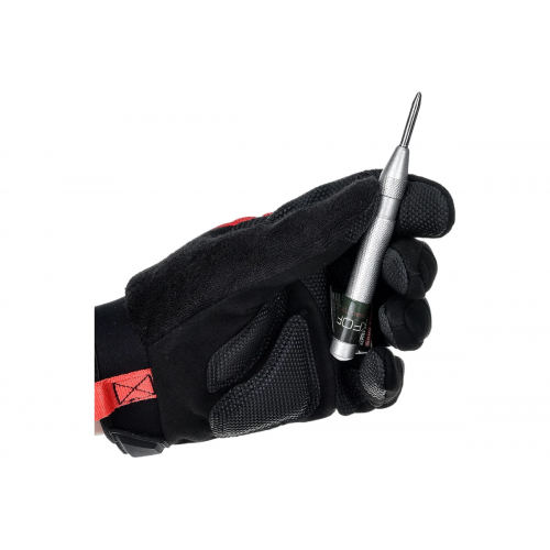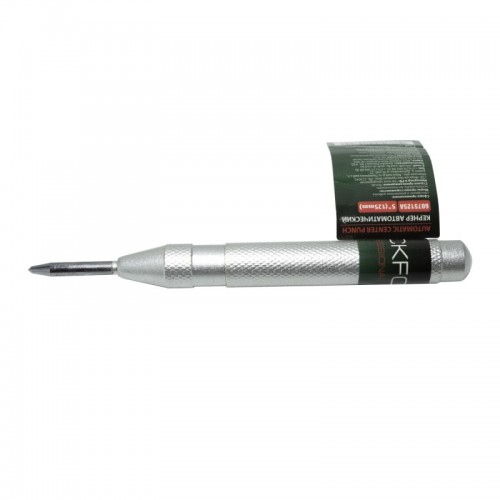 Кернер автоматический выполнен в металлическом корпусе и имеет ромбовидную накатку для более надежного удержания инструмента. Длина автоматического кернера составляет 125 мм. Основное назначение кернера - создание нестираемых отметок на поверхности заготовки и углублений в металле для точного захода сверла. Автоматический кернер очень прост в работе. Достаточно расположить его в нужной точке и нажать на него. Усилия пружины достаточно для того, чтобы сделать небольшое углубление в любом материале. Основное отличие от ручного кернера заключается в том, что ему не требуется ударный инструмент. Его заменяет ударник, который в определенном положении освобождается и под действием системы пружин ударяет по закаленному стержню.