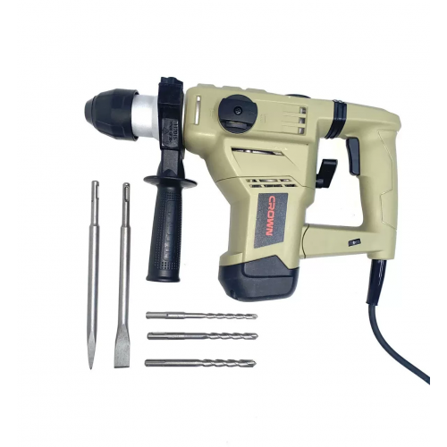 CROWN CT18102 — мощный профессиональный сетевой перфоратор, предназначенный для интенсивных работ по бетону, кирпичу, дереву и металлу. Благодаря энергии удара 5 Дж и высокой мощности 1500 Вт, инструмент справляется с тяжелыми задачами, включая долбление и сверление твердых материалов.